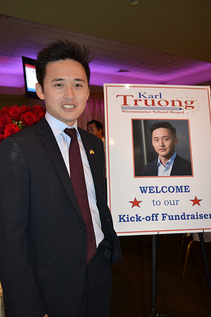 WESTMINSTER - Cũng như hầu hết các ứng cử viên, muốn được nhiều người ủng hộ cần phải có nhiều tiền để vận động, quảng cáo một cách sâu rộng đến mọi tầng lớp cử tri. Ứng cử viên vào Hội Đồng Học Khu Westminster, Luật sư Karl Trương cũng không ngoài mục đích đó, và buổi gây quỹ của anh được tổ chức vào lúc 6 giờ tối Chủ Nhật, 18 tháng 9, 2016 tại nhà hàng Grand Garden, thành phố Westminster, Nam California.