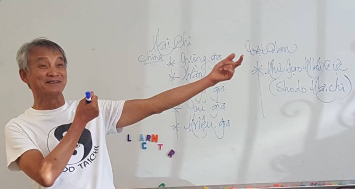 “C̣n ở Việt Nam th́ chỉ có Shodo Taichi, hay c̣n gọi là ‘Thư đạo thái cực’ do tôi phát triển, và chỉ cần theo học tổng cộng 12 giờ, với ba bài quyền,” ông nói.