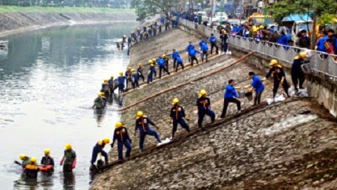 Công nhân thi công tại sông Tô Lịch (Ảnh minh họa)
