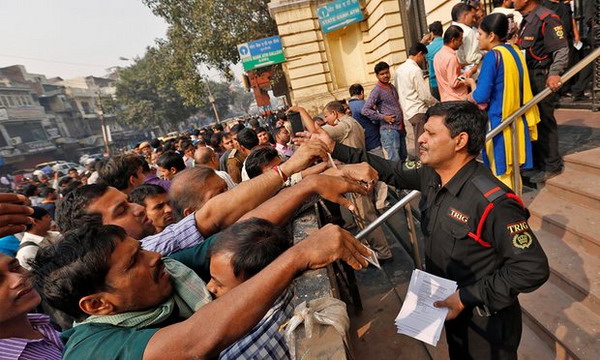 Hơn 1,2 tỷ dân Ấn Độ đang phải đứng xếp hàng để đổi tiền. Loại tiền mặt 500 và 1000 rupia của Ấn Độ (khoảng 10$ và 20$, mệnh giá lớn nhất), tổng cộng 86% tiền mặt Ấn Độ sẽ phải đổi ra tiền mới. Số tiền 86% tương đương 223 tỷ USD.