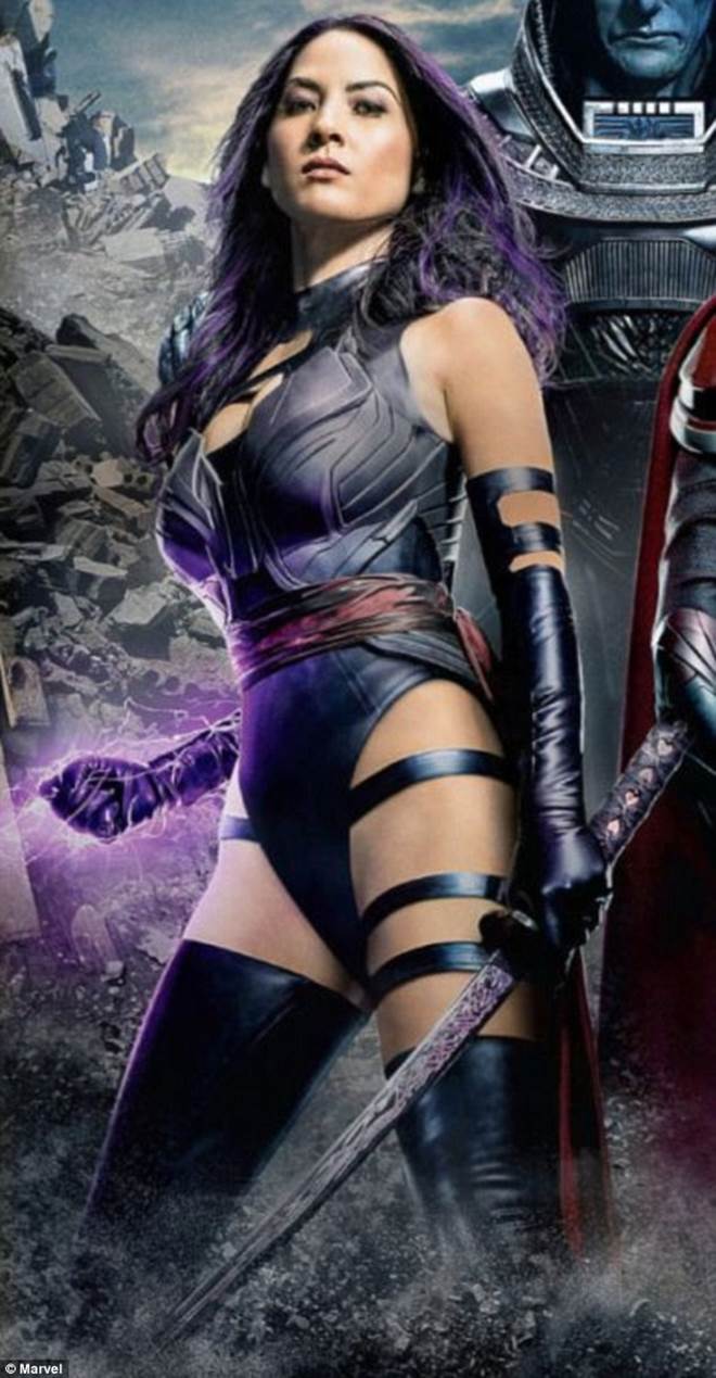 Tạo hình nóng bỏng của Olivia Munn vai Psylocke trong phim X-Men: Apocalypse. Đây là vai diễn lớn trong sự nghiệp diễn xuất của cô, giúp người đẹp được nhiều khán giả biết đến hơn.
