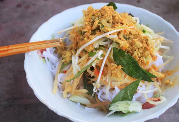 Bún kèn được nấu trong nước dùng cari dừa hoặc nước dùng từ các loại cá biển, ăn kèm với rau thơm và cá Thu xào xả ớt. Tô bún kèn như tổng hòa của các màu sắc trắng của bún, giá, xanh của rau, đỏ của ớt, vàng cam của đu đủ bào, và vàng của nước lèo và cá xay nguyễn, cùng với vị beo béo của nước cốt dừa, ngọt đậm đà của cá, cay của ớt.