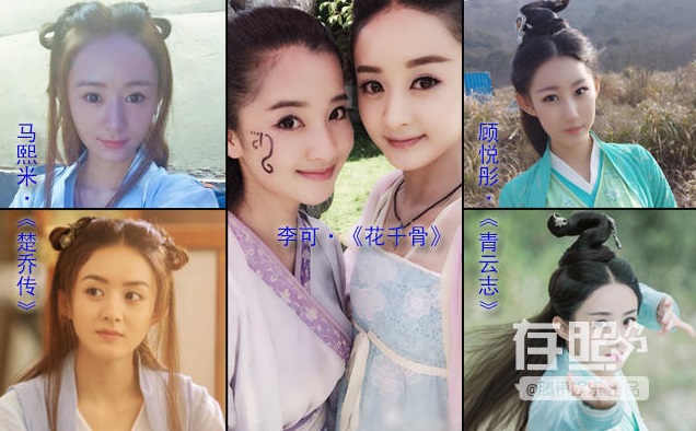 Ngoài ra trong phim Hoa thiên cốt Triệu Lệ Dĩnh cũng sử dụng diễn viên đóng thế cho những cảnh quay từ xa hoặc phía sau mỗi khi cô nàng có việc bận không thể tới phim trường, người đóng thế này có tên Lư Khả (ảnh giữa), sở hữu ngoại h́nh xinh đẹp và thuần khiết không kém Triệu Lệ Dĩnh.