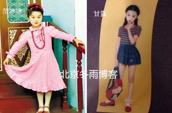 Ảnh ngày nhỏ của Phạm Băng Băng (trái) và Cam Lộ (phải)