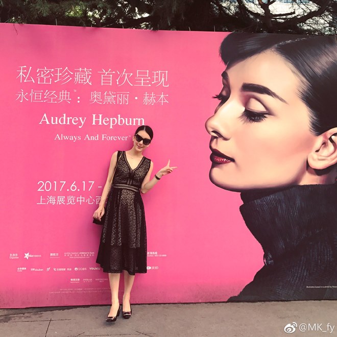 Moka Phương Viện ăn mặc thời trang dù đang mang bầu hơn 5 tháng đi xem triển lãm ảnh về minh tinh quá cố Audrey Hepburn.