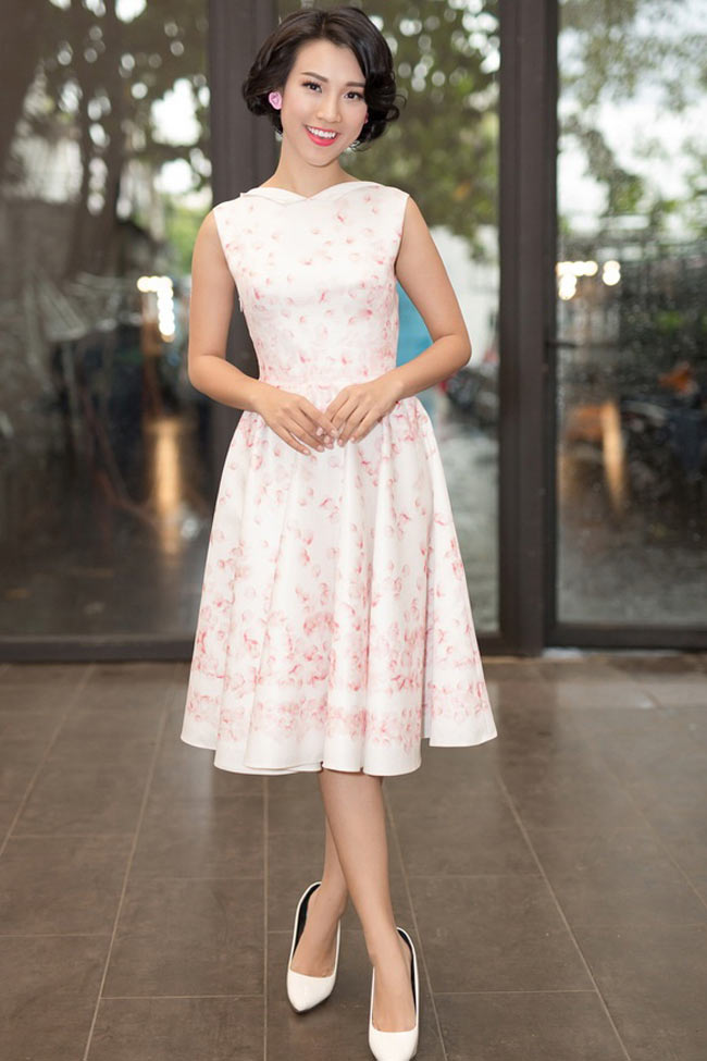 Hoàng Oanh trông như một quý bà U50 với kiểu tóc ngắn uốn phồng. Người đẹp dường như cũng chẳng có một đôi giày cho thật vừa vặn để đi