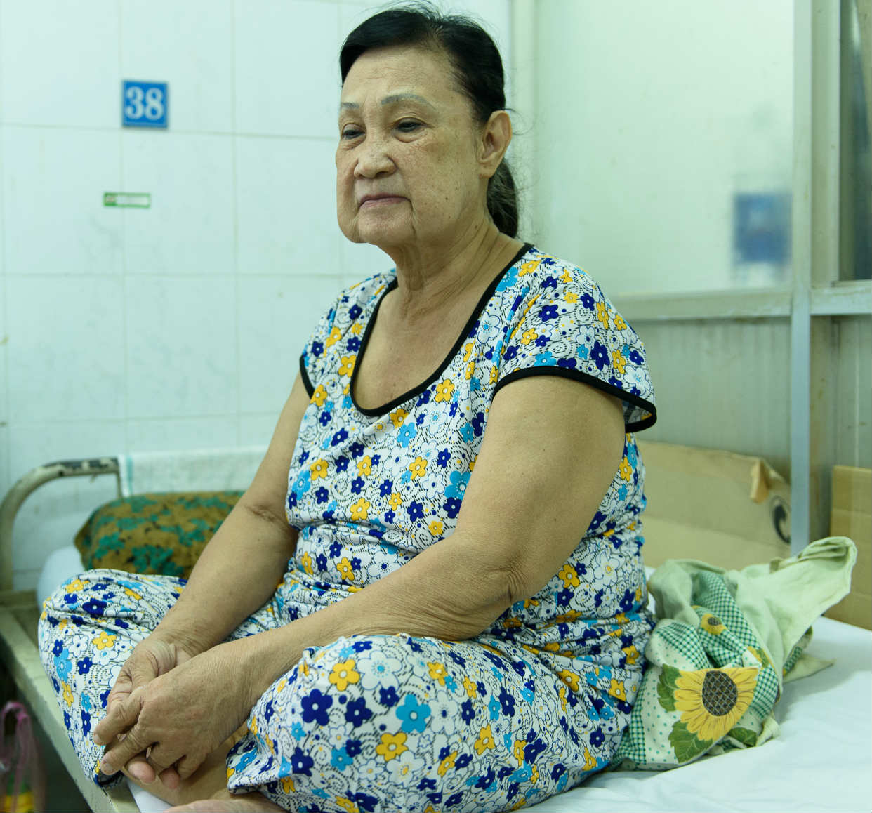 Hoa Mỹ Hạnh cho biết thêm khi bệnh viện yêu cầu đóng viện phí, bà không có đồng nào trong túi, đành phải vay nóng 1 triệu đồng. “T́nh cảnh tôi giờ rất khốn đốn. Tiền tôi vay phải đóng viện phí, vừa để dành nếu bác sĩ bảo mua thuốc về uống. Mấy ngày nhập viện tôi không dám mua cơm ăn, đi xin cơm không rồi ăn với muối tiêu”, bà kể.