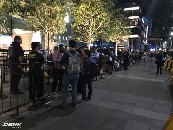 V́ xem Kingsman vào lúc 8h30 ngay gần đó, thời điểm film kết thúc là hơn 11 giờ đêm nên tôi đă tranh thủ tạt qua một lần nữa để xem t́nh h́nh xếp hàng ra sao. Lúc này, số người xếp hàng đă đông hơn, ngoài những người đă xếp vào hàng th́ có một bộ phận đang túm tụm lại. Có vẻ như họ chưa hài ḷng với vị trí xếp hàng của ḿnh. Rất may chưa hề xảy ra tranh căi nào. Ngoài ra, có thể thấy, Apple đă cực ḱ chuyên nghiệp khi kê rào chắn cũng như rất nhiều nhân viên bảo vệ để đảm bảo quá tŕnh xếp hàng diễn ra một cách ổn định nhất