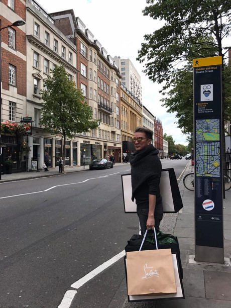 Đi kèm với dòng chia sẻ trên, Đàm Vĩnh Hưng đăng tải loạt hình ảnh anh tạo dáng sang chảnh bước ra từ cửa hàng hiệu Gucci, trên tay anh cầm túi lớn, túi nhỏ những món hàng đắt đỏ vừa mua sắm khiến fan "choáng váng".