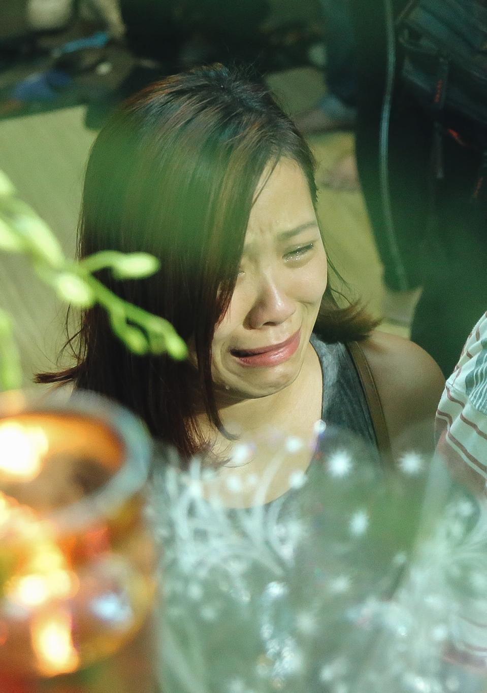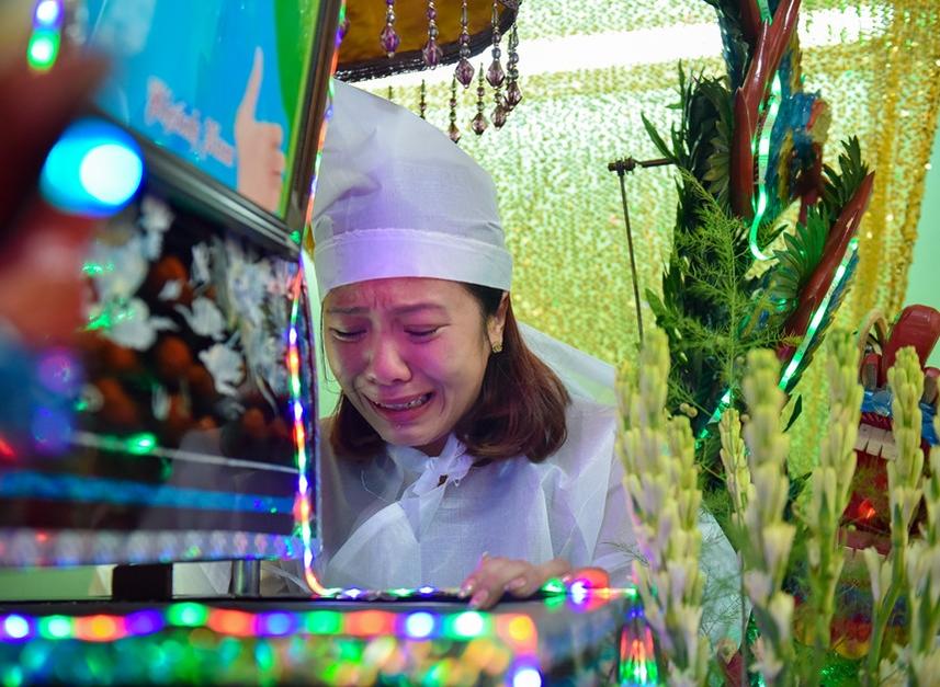 Chị khóc nức nở trước di ảnh của cha và liên tục xin lỗi vì không thể về sớm hơn.