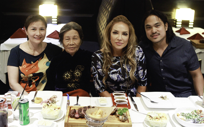 Ba mẹ con đi ăn tối cùng Roland - bạn trai kém 12 tuổi của Thanh Hà.