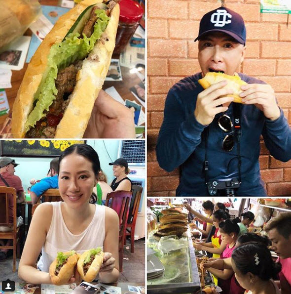 Chân Tử Đan và bà xã thích thú khi khám phá ẩm thực với món bánh mỳ ở Hội An.