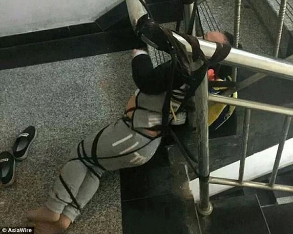 Tức giận vì cho rằng chồng cũ lật lọng, người vợ đã quyết định trói con trai út vào cầu thang và chụp ảnh để uy hiếp chồng mình.