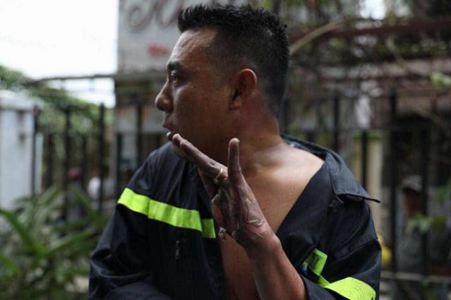 Hình ảnh 1 chiến sĩ bị bỏng bàn tay, đến mức tróc da, đang được chia sẻ nhiều trên mạng xã hội. Anh được mô tả chạy ra từ hiện trường vụ cháy, ghì chặt bàn tay bị bỏng, nhưng anh không kêu la, chỉ tìm 1 chỗ khuất đứng nén cơn đau. Anh không muốn trở thành 1 gánh nặng thêm cho những đồng đội khác, trong khi còn rất nhiều người kêu cứu trong đám cháy.