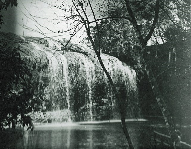Thác Cam Ly, một thắng cảnh nằm gần trung tâm thành phố Đà Lạt, thập niên 1920. Ngày nay sự lấn chiếm của cư dân và tình trạng ô nhiễm nước đã khiến thác nước này không còn được thơ mộng như xưa.