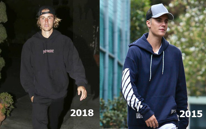Cùng diện combo mũ lưỡi trai và áo hoodie nhưng nhìn Justin 2014 dễ cưng lắm chứ Justin 2018 thì chỉ khiến người ta thở dài vì trông quá luộm thuộm mà thôi.