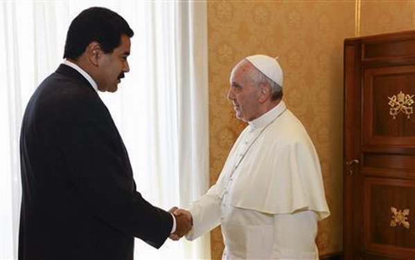 Maduro Venezuela đã viết thư cho Giáo hoàng cầu cứu và yêu cầu đối thoại. Tổng thống Venezuela Maduro đã viết một bức thư cho Đức Giáo hoàng Phanxicô yêu cầu gia hạn đối thoại trong bối cảnh khủng hoảng chính trị và áp lực của phương Tây bắt ông từ chức, Bộ trưởng Ngoại giao Vatican, Hồng y Pietro Parolin, cho biết hôm thứ Hai.