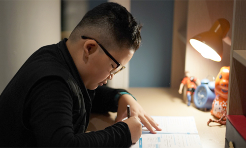 Cậu bé 9 tuổi học ở nhà, trưa 22/2. Ảnh: Thanh Tân.