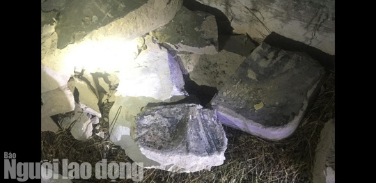 Tối 15-5, khi phá một phần bê tông thì bên trong lộ ra một phần thi thể người kèm theo mùi hôi thối nồng nặc. Mọi người không đập khối bê tông nữa mà báo ngay cho công an xã. Công an nhanh chóng khám nghiệm hiện trường, điều tra vụ việc.