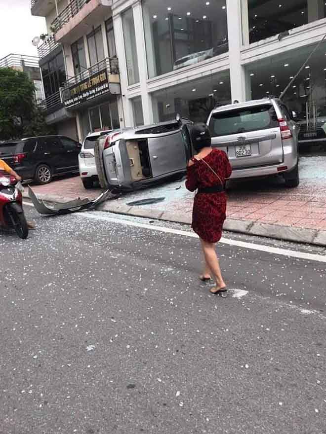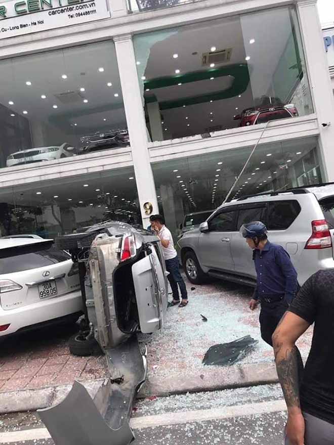 Được biết, có người điều khiển chiếc xe lái thử tại showroom Car Center trên tầng 2 đã lao thẳng xe xuống dưới đường làm vỡ tan cửa kính và chiếc xe cũng hư hại nặng nề. Rất may thời điểm xe lao xuống không có ai ở bên dưới khu vực xe va chạm với mặt đất nên không xảy ra thiệt hại nào về người. Nhưng có 2 chiếc xe vô tình bị “liên lụy” được dân mạng chia sẻ là 1 chiếc Toyota Prado bị móp đầu do xe kia lao xuống và 1 chiếc Lexus chưa rõ tình trạng sứt mẻ.