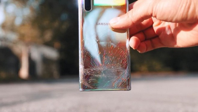 Riêng Galaxy Note 10 do được làm từ khung nhôm nguyên khối chắc chắn và lớp kính bảo vệ nên máy không bị bung bộ phận ra ngoài. Tuy nhiên do được bao bọc từ kính nên mặt lưng và mặt trước máy dễ dàng bị nứt vỡ. Nhưng như đã nói, máy vẫn có thể hoạt động trơn tru như bình thường.