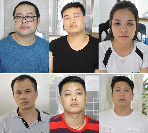 Trương Tuệ Mẫn (bìa trái, góc trên) cùng đồng phạm. Ảnh: Công an cung cấp