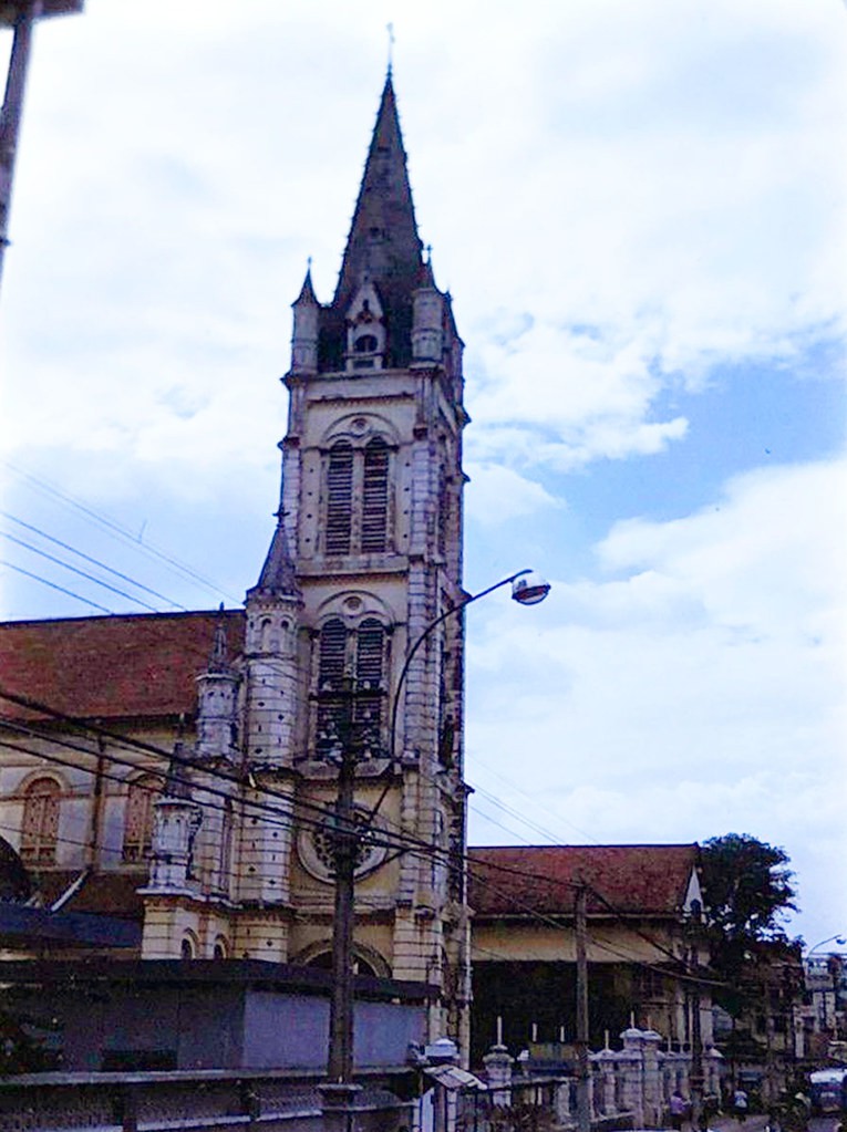 Cận cảnh tháp chuông nhà thờ Tân Định trước 1975.