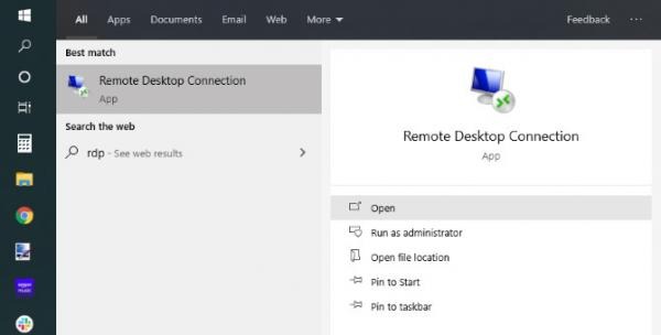 RDP là ứng dụng được cài đặt mặc định trên hệ điều hàn*h Windows, do vậy bạn chỉ cần t́m kiế*m tên ứng dụng trong Start và khởi chạy nó. Hoặc sử dụng "rdp" để t́m kiế*m thông qua bảng lệnh.