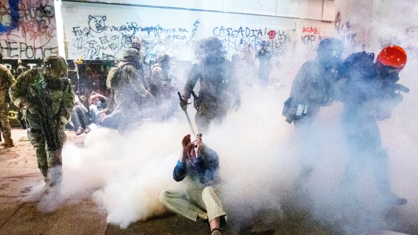 Trước khi đạo quân của Trump tới, đoàn biểu t́nh chỉ vài trăm người. Khi đạo quân chống khủng bố của Trump tới, dùng lựu đạn cay và nhiều biện pháp mạnh khác giải tán biểu t́nh, bây giờ mỗi đêm vài ngàn người xuống đường phản đối.