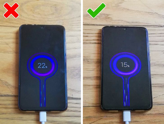Sạc điện thoại liên tục là sai, vì khiến tuổi thọ của pin giảm đi. Tốt nhất là chỉ sạc pin khi còn dưới 20% nhưng trên 5%.