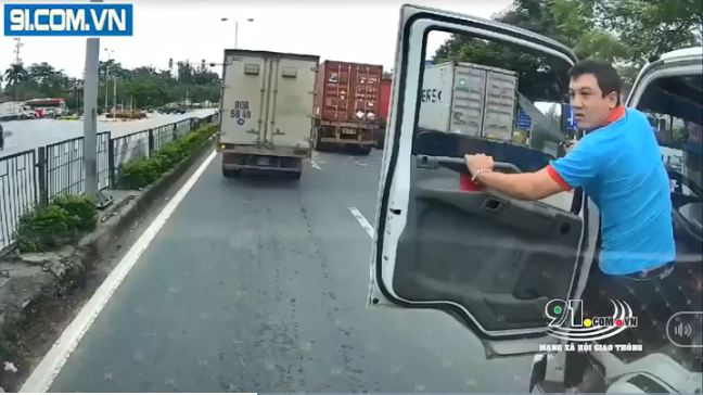 Tưởng chừng không có chuyện gì xảy ra cho đến khi đi được một đoạn nữa thì lái xe bồn đã ép xe container sát dải phân cách rồi hung hăng cầm dao xuống chửi bới, dằn mặt. Được biết, sự việc xảy ra vào 10h10 ngày 3/10 tại Hải Phòng và đã được camera hành trình của chiếc xe container ghi lại.