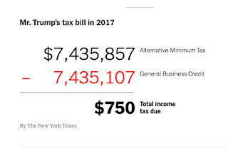 Cái điều mâu thuẫn kẻ này không hiểu và NYT dĩ nhiên không đề cập là nếu ông Trump cả chục năm không đóng một xu thuế nào th́ làm sao IRS lại trả lại cho ông tới gần 73 triệu? Không đóng thuế sao được trả lại nhiều tiền thế? Tối thiểu cũng đă phải đóng ít nhất là 73 triệu th́ mới lấy lại được 73 triệu, phải không? Nên nhớ là tiền thuế tối thiểu phải đóng qua AMT không thể được hoàn trả bằng tiền mặt, nghĩa là số 73 triệu bồi hoàn là mức TT Trump đă đóng trên mức tối thiểu AMT.
