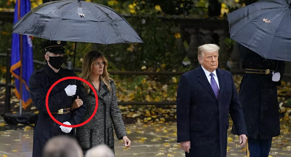 Hãng Sputnik hôm 12/11 đưa tin, bà Melania được trông thấy đứng phía sau ông Trump vài bước chân khi cùng Tổng thống Mỹ đương nhiệm tham dự buổi lễ đặt vòng hoa nhân dịp kỷ niệm Ngày Cựu chiến binh tại nghĩa trang quốc gia Arlington, bang Virginia, Mỹ.