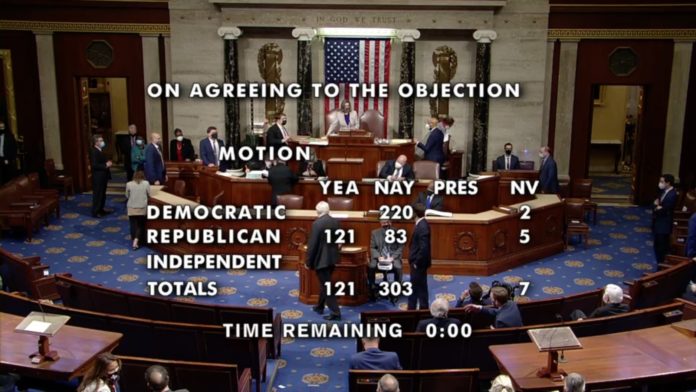Chỉ có 6 Thượng nghị sĩ Cộng hoà bỏ phiếu đồng t́nh so với con số ban đầu là 14. Tại Hạ viện, có 121 Dân biểu Cộng ḥa ủng hộ trong khi ước tính ban đầu có hơn 140 người tham gia. Một số nhà lập pháp Cộng hoà dự tính tham gia phản đối đă thay đổi ư định sau cuộc bạo động.