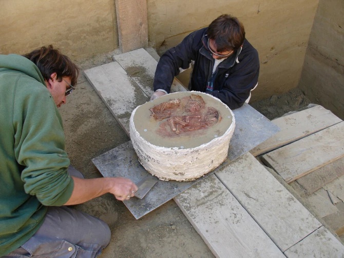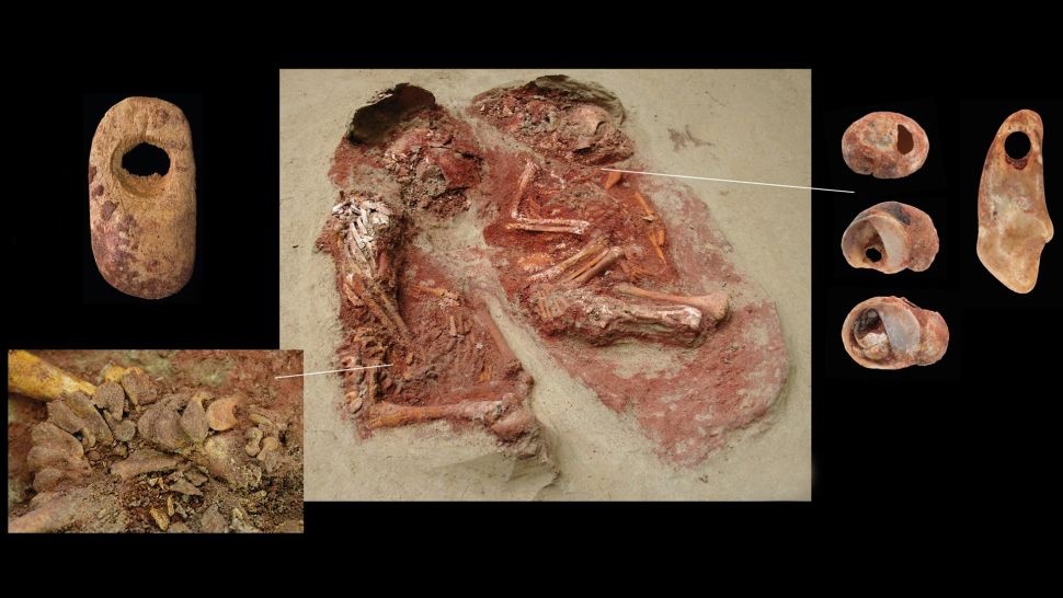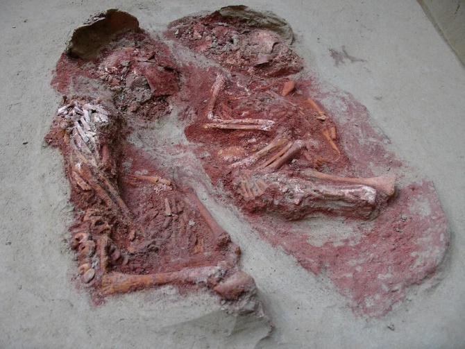 Hai bộ hài cốt trẻ em được phát hiện trong một ngôi mộ hình bầu dục bên bờ sông Danube. Phần đất màu đỏ như vệt máu bao quanh hai cái xác bước đầu được nhận định là đất đỏ son. Có thể gia đình đã nhúng xác những đứa trẻ vào đất son rồi mới mang đi an táng.