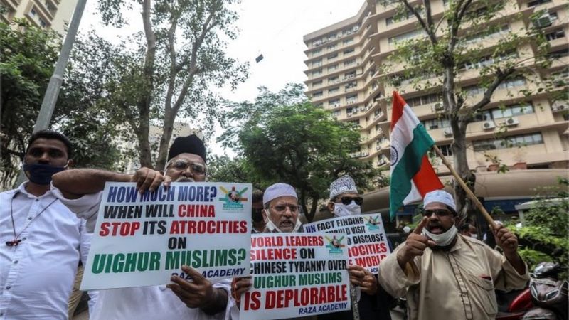 Biểu t́nh phản đối điều được cho là cách đối xử tàn tệ của Trung Quốc đối với cộng đồng người Uighur theo Hồi Giáo