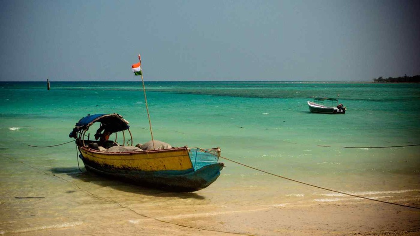 Một chiếc thuyền treo cờ Ấn Độ trên đảo Neill, thuộc quần đảo Andaman. Ảnh: Nikkei Asia.Khoản hỗ trợ đầu tiên