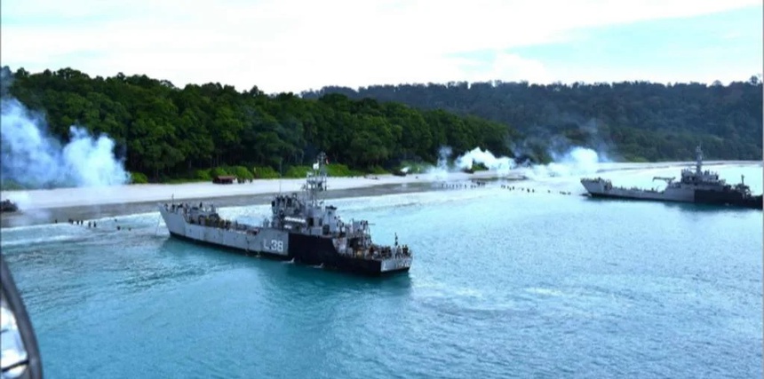 Các tàu hải quân Ấn Độ tham gia cuộc tập trận bảo vệ quần đảo Andaman và Nicobar. Ảnh: Hải quân Ấn Độ.