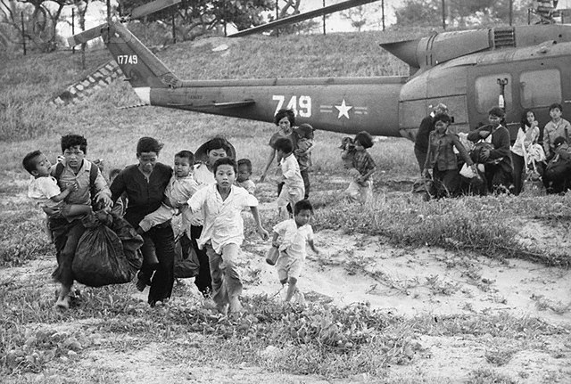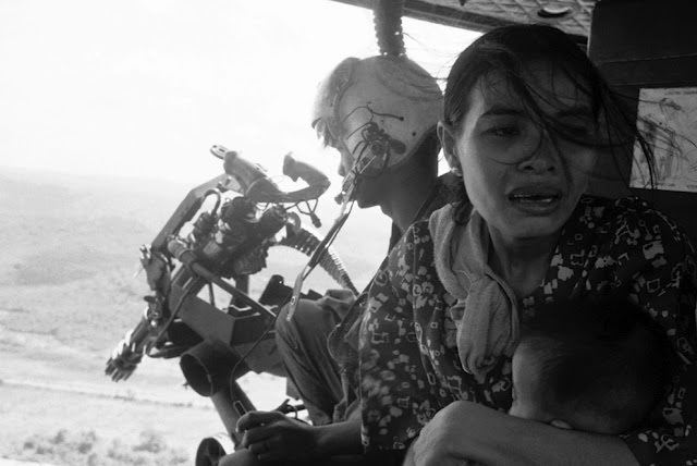 Ngày 22-3-1975 một phụ nữ được trực thăng di tản ra khỏi Tuy Hòa,ôm chặt con vào lòng với nỗi đau khổ vì người chồng còn kẹt ở lại