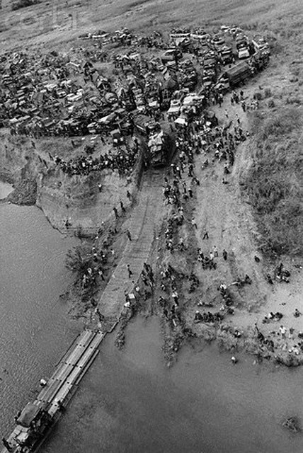 Đoàn xe nối đuôi qua cầu phao trên Sông Ba ngày 18-3-1975. Phú Yên