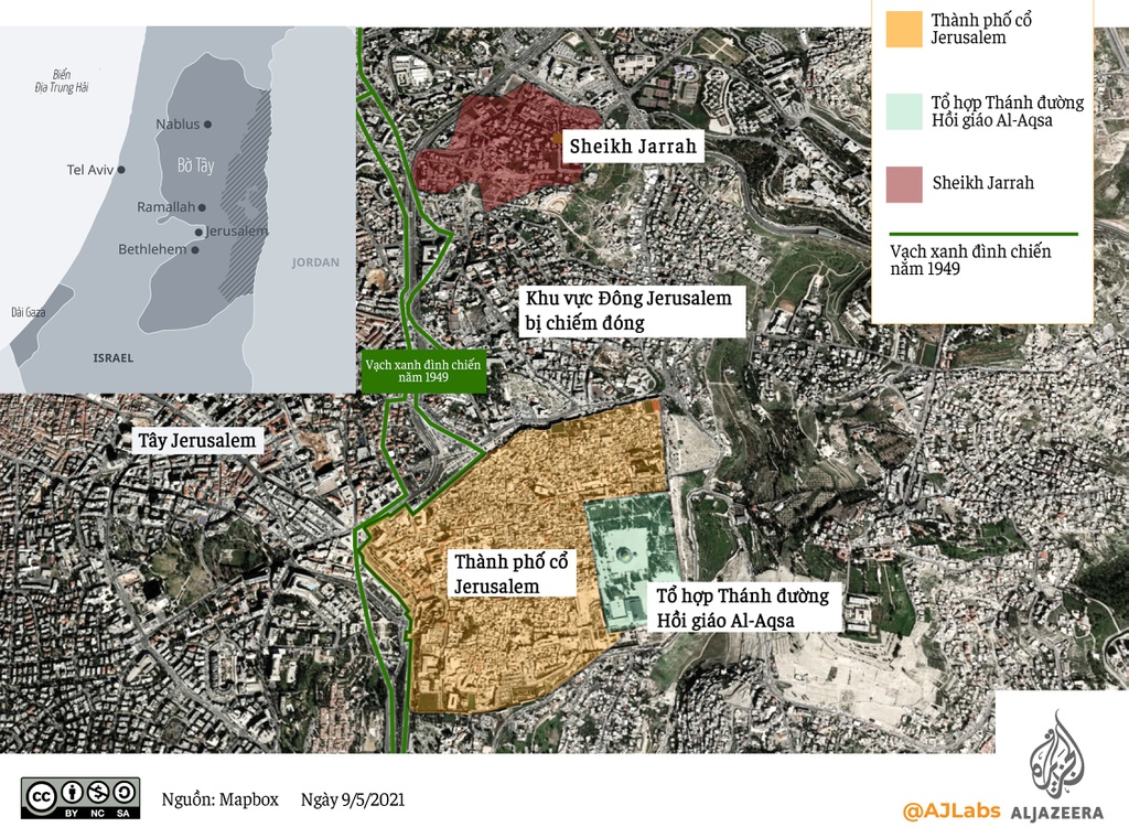 Bản đồ các khu vực tại Jerusalem. Ảnh: Al Jazeera.