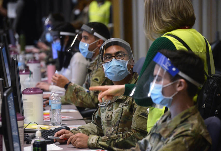 Bang Oregon triển khai Lực lượng Vệ binh Quốc gia Oregon đến để giúp các bệnh viện đối phó với Covid-19. Ảnh: Oregon Military Department Public Affairs.