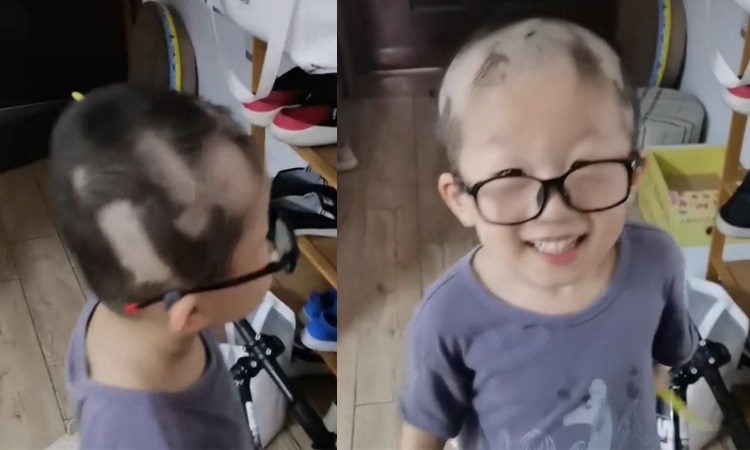 Video: Bố mẹ "chết đứng" nhìn con tự cắt tóc