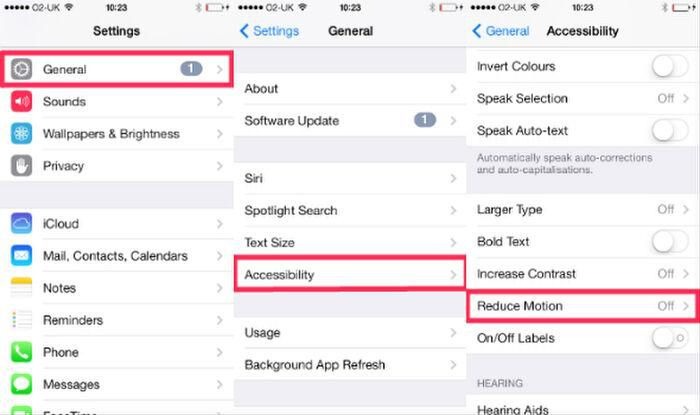 Những chiếc iPhone cũ với hiệu năng chậm chạp, bạn buộc phải kích hoạt chức năng Reduce Motion bằng cách mở Setting > General > Accessibility > Motion mở bật "ON" mục Reduce Motion.