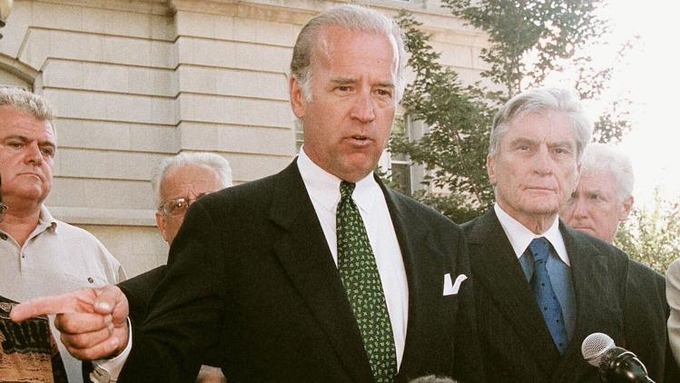 Joe Biden khi còn là chủ tịch Ủy ban Đối ngoại Thượng viện phát biểu trước truyền thông bên ngoài trụ sở cảnh sát quốc hội Mỹ hôm 11/9/2001. Ảnh: Congressional Quarterly.