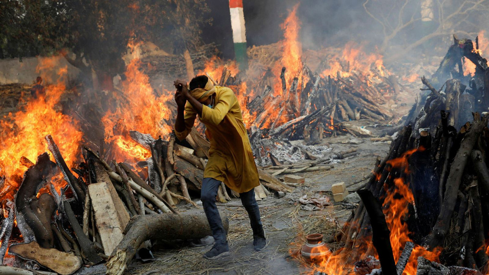 Một băi hoả táng thủ công nạn nhân COVID-19 tử vong tại Ấn Độ trong thời kỳ kinh hoàng của làn sóng dịch thứ hai. Ảnh: Reuters