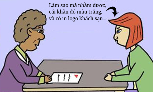 - Làm sao mà nhầm được, cái khăn đó màu trắng, và có in logo khách sạn New World rất lớn trên đó nữa.