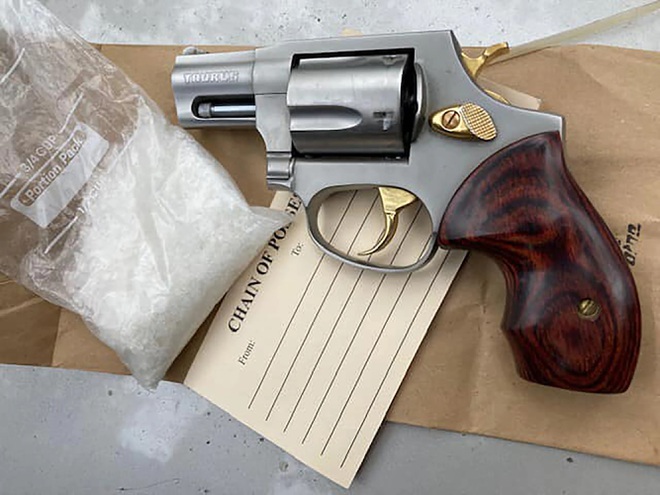 Túi ma túy đá và khẩu súng ngắn cảnh sát tìm thấy khi lục soát nhà của Kertz.