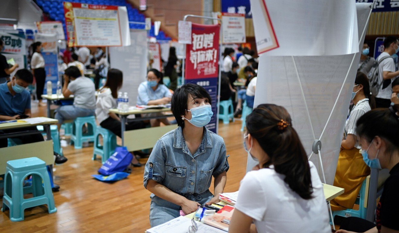 Người t́m việc tại hội chợ việc làm ở Trịnh Châu, tỉnh Hà Nam. Ảnh: AFP