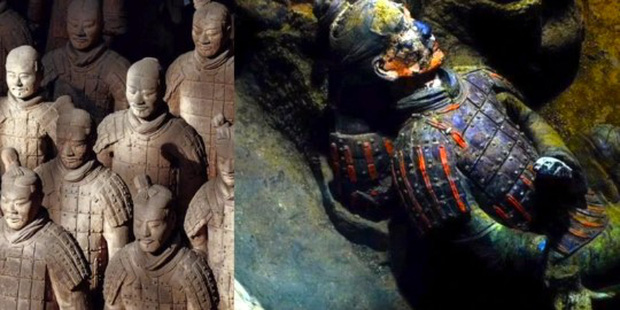 Màu áo của các chiến binh đất nung bị mai một do quá tŕnh ô-xy hóa (Ảnh: Baidu)